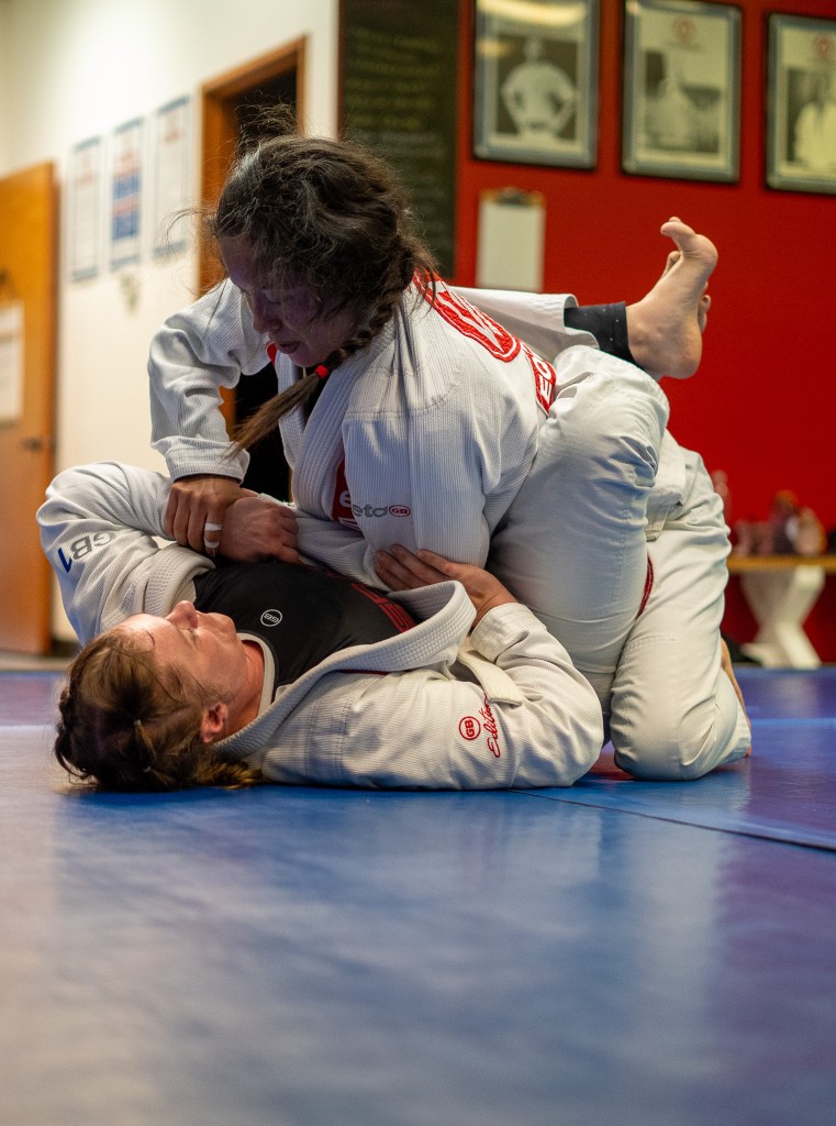 BJJ requires a high level of body awareness and control and often comes with a set of values and philosophies that encourage respect, humility, and discipline. These values can help shape a positive and respectful outlook on life. It also offers opportunities for women to compete and set goals for themselves. Achieving belts and promotions can be incredibly rewarding and serve as a source of motivation.